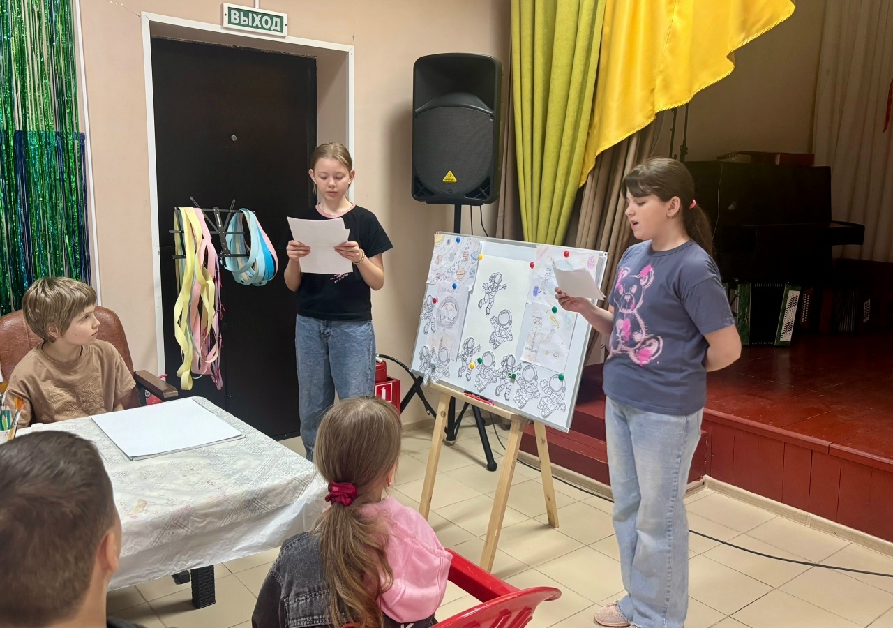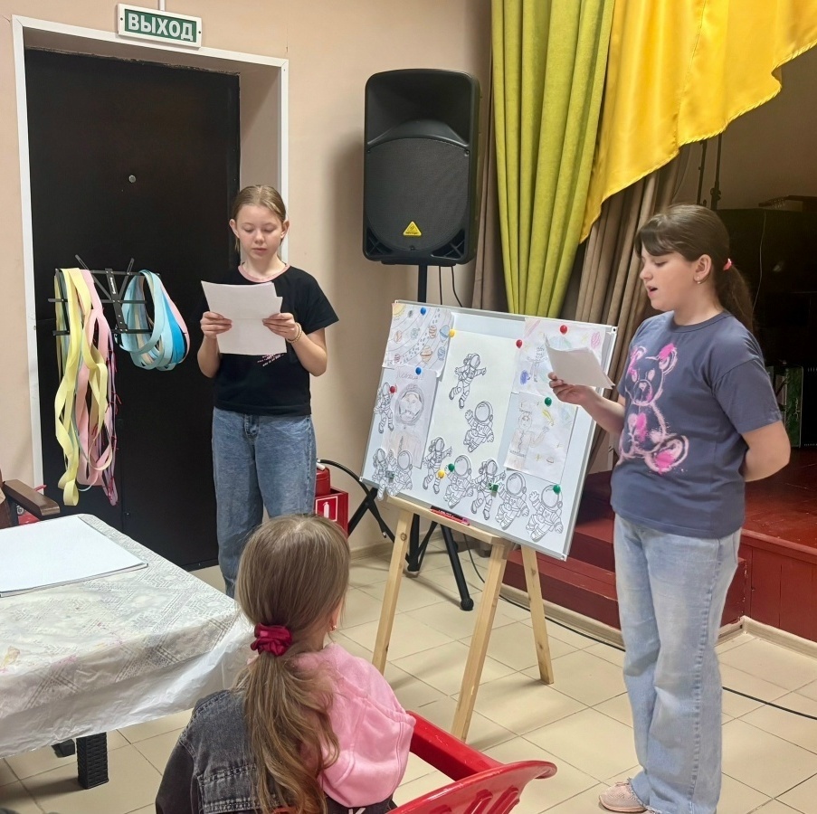 На космической лекции, которую подготовили наши юные звездочки: Надежда Лебедева и Ева Борзилова, ребята узнали много интересного: о первых космонавтах и первых полетах в космос; о планетах нашей солнечной системы; о загадочных фактах о космосе.